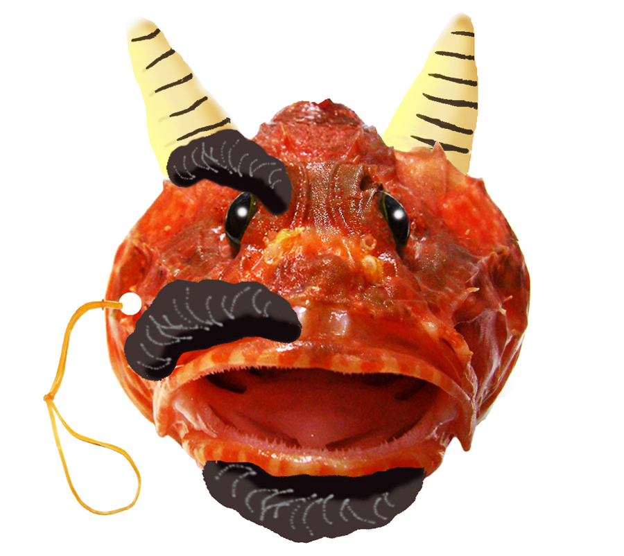 眉毛やヒゲは怖そうな感じに、自由に描いてください。