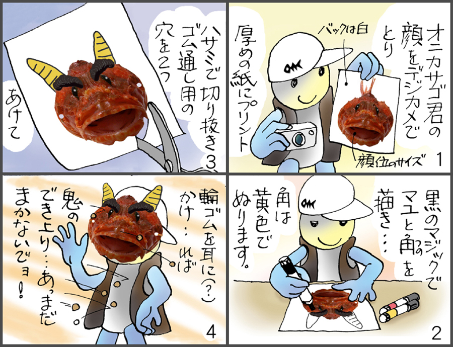 眉毛やヒゲは怖そうな感じに、自由に描いてください。